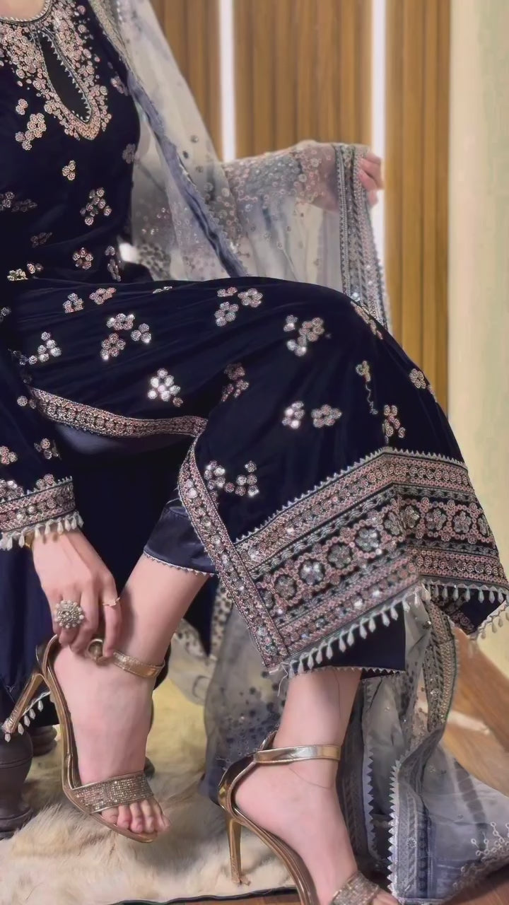 This exquisite 3-piece embroidered suit brings together traditional craftsmanship and modern aesthetics.