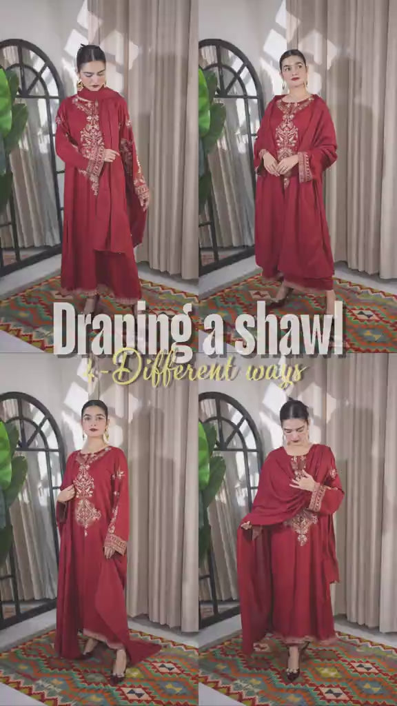 Upgrade your festive and formal wardrobe with this stunning embroidered 3-piece suit, crafted to bring effortless grace to your style.